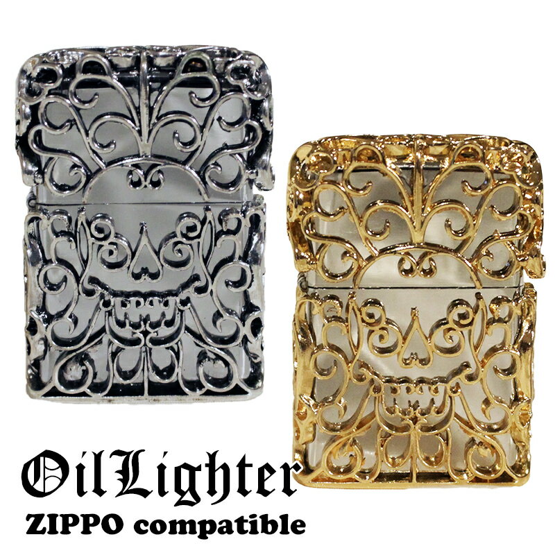 アラベスク スカル SKULL ドクロ 唐草模様 ゴールド シルバー フルメタルジャケット メタル オイルライター ライター ZIPPO zippo ジッポー ジッポ コンパティブルケース 互換商品 ケース