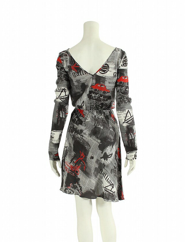 ガリアーノ GALLIANO ニュースペーパー柄 フレアワンピース 長袖 膝丈 26/40 (M) コットン100% グレー 赤 レディース 【ベクトル 古着】【中古】状態ランク ”A”詳細については、下記および「状態ランクについて」ページをご覧ください。