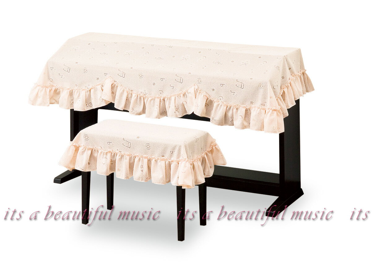 【its】デジタルピアノ椅子カバー(ベンチ椅子用)アルプスOJ-CF-BE「ニット生地に音符柄のテープリボン」【フリーサイズ】(アルプスOJ-BEシリーズ)