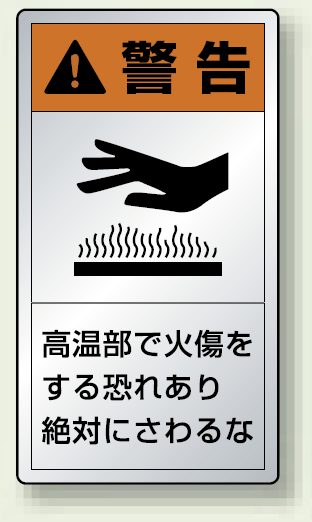 熱に強いアルミ製PL警告ラベル タテ型ステッカー 高温部で火傷をする恐れあり絶対に触れるな (10枚1組) サイズ:(大)110×60mm (安全用品・標識/安全標識/製造物責任(PL) 警告ラベルステッカー)