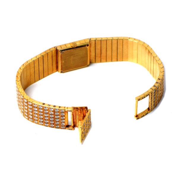 ダイヤルやケース、ブレス全面にダイヤモンドをセッティングした豪華な一本です。