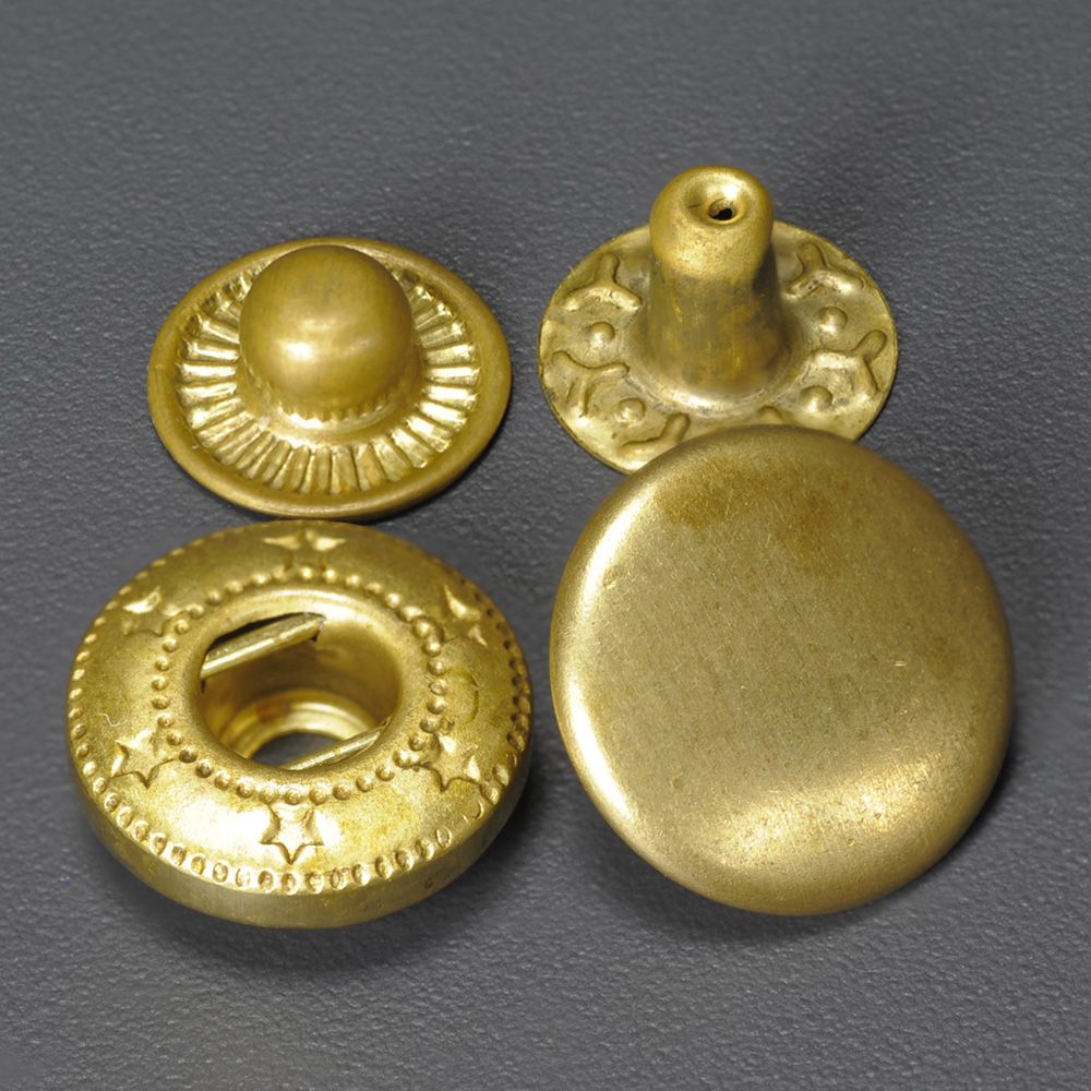 スナップボタン クラフトパーツ真鍮製アンティークカラーの15mmスナップボタンハンドクラフトなどに使用することができる、真鍮製パーツのスナップボタン(ドットボタン)。