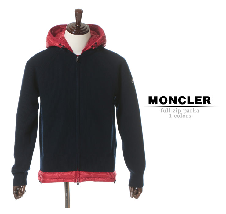 MONCLER (モンクレール) 異素材切り替え 袖ロゴワッペン フード付き フルジップ ニットパーカーブランド メンズ 男性 カジュアル アウター ニット パーカー シンプル 【MC94125009799T】